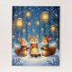 A heartwarming winter scene featuring adorable woodland animals gathered around a cosy fire, surrounded by glowing lanterns and softly falling snow. Perfect for the holidays or any winter lover. Puzzle size and number of pieces can be changed to any of the rectangular sizes offered.