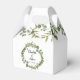 An elegant wedding favour box featuring woodland greenery foliage framing your names and special date set in chic typography. You can personalise with your own thank you message on the reverse. A perfect way to say thank you to your guests! Designed by Thisisnotme©