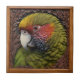 Woodland Harmony: Green Lorikeet On Carved Wood Ceramic Tile