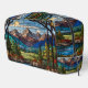 Woodland mountain scene vintage stain glass dopp kit