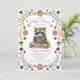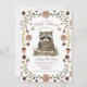 Welcome guests to a woodland baby shower with this sweet watercolor racoon, nestled within a delicate frame of florals, acorns, and greenery. Painted in soft earthy tones, this rustic invitation captures the charm of this forest creature and brings a sense of cosy storybook magic to your celebration. A gentle blend of woodland whimsy and forestcore style — perfect for a gender-neutral baby shower inspired by nature and warmth.