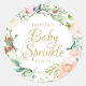 Woodland Roses Gold Script Baby Sprinkle Classic Round Sticker