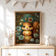 Add a warm woodland moment to your nursery with this adorable squirrel illustration framed by soft blue flowers and a cozy forest wreath. The gentle watercolor texture and sweet expression make it a natural fit for a baby room, toddler room, or playroom. This print works beautifully with woodland nursery decor, boho nursery themes, and gender neutral nurseries. It’s also a charming baby shower gift for parents building a woodland animal gallery wall.
