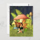 Pretty fairy sitting by woodland mushrooms or toadstools and ferns in a sunny forest glade, 3d digitally rendered illustration