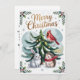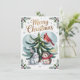 Celebrate the season with this adorable Christmas card featuring a snow-dusted evergreen tree, glowing with golden lights and surrounded by charming woodland friends — a white rabbit, a cozy hedgehog in a red scarf, and a bright red cardinal perched above. Framed with holly and berries and topped with a golden “Merry Christmas” greeting, this whimsical design brings warmth, joy, and a touch of forest magic to your holiday wishes.