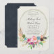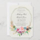 Soft and beautiful woodland flowers, succulents and feathers adorn a pale tree ring. Perfect for the nature loving couple. Engagement invitation. Couples Shower Invitation