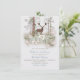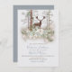 Beautiful Woodland forest with pine trees, deer stag, and pastel and neutral soft green, blues and pink foliage on a faux, very light grey background. The back is a dusty blue grey background. Perfect for a wedding with a nature mountain side feel.