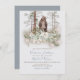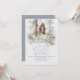 Beautiful Woodland forest with pine trees, bear, and pastel and neutral soft green, blues and pink foliage on a faux, very light grey background. The back is a dusty blue grey background. Perfect for a wedding with a nature mountain side feel.