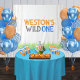 Faded Forest Wild One Woodland 1st Birthday Party Backdrop. In Blue, Orange, Brown. Part of our Wild One Birthday Collection.