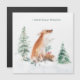 This design features a watercolor illustration of Woodland Winter Fox and Pine Trees.