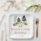 Rustic birthday party paper plate with adorable wolves and trees. Perfect for a spring or summer birthday party. The words can be changed to suit your own details or requirements