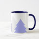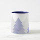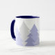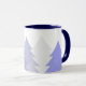 This ceramic coffee mug is shown in a refreshing image of woodlands fir tree print.