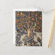 A fine art postcard with the textile, Woodpecker Tapestry (1885) by William Morris (1834-1896) an artist from the arts and crafts movement. The subject of this textile was taken from Ovid's Metamorphoses. It was once a highly prized tapestry to hang on walls in Victorian homes. Two birds in an apple tree with swirling leaves.