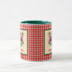 This pair of lovely cardinals want to help cheer you up when you drink your morning coffee or sip your afternoon tea. The mug background is a cheery gingham-like farmhouse chic plaid, and the cardinal is framed in a contrasting Christmas green. The mug owner's name appears in a red typeface script, so make sure to your or your recipient's name in the Personalise section. If you love watching cardinals in the forest or even your backyard, this rustic country-style cup might remind you of those lovely bright red birds. This design comes on several different styles of mugs, glassware, and drinkware. The choice here includes a green handle and green interior, but you can opt for mug with a plain handle and interior.