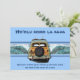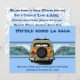 A vintage woody equipped with a pair of longboards, finds the perfect double breaking wave. The illustrated wave has a ghost image of a hibiscus pareau print. The vintage California license plate says Beachin'. This customisable invitation comes in two colorways.