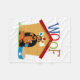 A cute dog with a ball and dish of food, a dog house, and colourful text that reads WOOF on Woof Dog T-shirts, hoodies, mugs, bags, cards, stickers, key chains, buttons, magnets, dry erase boards, electronic cases and sleeves, paper plates and napkins, and many other dog design items!
