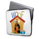 A cute dog with a ball and dish of food, a dog house, and colourful text that reads WOOF on Woof Dog T-shirts, hoodies, mugs, bags, cards, stickers, key chains, buttons, magnets, dry erase boards, electronic cases and sleeves, paper plates and napkins, and many other dog design items!