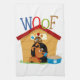 A cute dog with a ball and dish of food, a dog house, and colourful text that reads WOOF on Woof Dog T-shirts, hoodies, mugs, bags, cards, stickers, key chains, buttons, magnets, dry erase boards, electronic cases and sleeves, paper plates and napkins, and many other dog design items!
