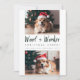 middle section of the card serves as a textual point. On a muted, neutral background, the words "Woof + Wonder" are written in large, elegant script. Just below, "Christmas Cheer!" adds an additional touch of festivity in a more understated font. Finishing off the section, a personalised message, allowing for customisable names and a date.