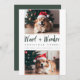 This card has a modern and festive design, perfect for the holiday season. It prominently features two photos of a cheerful dog, each adorned with a cute Santa hat.