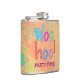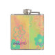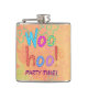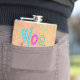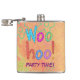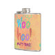 Have fun and party with this colourful flask. The word art WooHoo says it all with the customisable words Party Time below the word text art. Personalise with your name on the back. The colourful graphic art background with the words WooHoo in text art is on an orange and lime green ombre background. The art design background is textured with flowers and line outline flowers. Colours: Turquoise teal blue orange lime green purple. Have fun and party on!