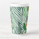 The picture shows a lively mosaic of lush Monstera leaves in lush green and yellow, combined with magnificent purple and orange flowers that stand out against a dynamic, wave-like background. It radiates a wild, tropical energy and a joyful abundance, which awakens curiosity and a natural connection.