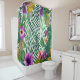 The picture shows a lively mosaic of lush Monstera leaves in lush green and yellow, combined with magnificent purple and orange flowers that stand out against a dynamic, wave-like background. It radiates a wild, tropical energy and a joyful abundance, which awakens curiosity and a natural connection.