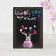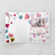 On the cover: "Wool You Bee Mine?" written in yarn with a cute, yarn alien and hearts. Inside are a page of woollen hearts and a peach frame of yarn that will be the location of your photo. All of the text except the main message are customisable.