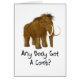 Fun illustration of a wooly mammoth with the cartoon caption saying "anybody got a comb?" on it. Sure to attract lots of comments and laughs.