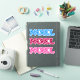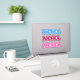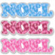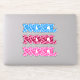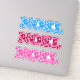 Sticker in NOEL word art patterned with Christmas trees - burgundy, sky blue, and fuchsia pink versions