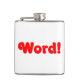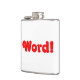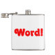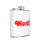 The flask itself is fine. It’s a cheap flask, obviously bought in bulk, however am prepared to overlook that. Given that it is a personalized item, I would have liked to have seen gift boxing instead of the generic packaging. Terrible printing, and/or quality. It’s a cheap, tacky vinyl. It is not cut straight and is also applied in a way that it is overhanging the bottom, causing the glue to catch on items and it will eventually roll and tear, damaging the wrap.