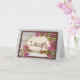word laugh carved in stone with pink flowers for birthday or other occasion