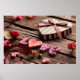 Word Love with heart shaped Valentines Day gift box on old vintage wooden plates. Sweet holiday background with rose petals and dried rose flowers. © and ® Bigstock® - All Rights Reserved.