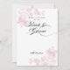This bridal shower words of wisdom card features vintage botanical florals in blush pink that frame the elegant calligraphy type on opposite corners of the front of the design.