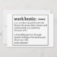 Work Bestie (noun): A Co-worker turned friend who shares the same daily torture and understands you perfectly because of it. A friendship grown through similar feelings of irritation and share eye rolls. see also: sanity keeper.