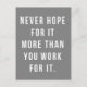 "Never hope for it more than you work for it" quote.