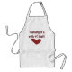 Cute, heavy duty apron with wide front pocket. Light to wear and easy slip on and off. Shorter length perfect for my 5 ft frame. I love it! Wording and print looks good with clear borders. Stitching is good, nicely finished.