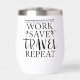 Stay hydrated on your adventures with this stylish Insulated Stainless Steel Wine Tumbler! Featuring a bold and inspiring design with the quote Work save travel repeat. This travel mug is perfect for explorers, hikers, and wanderlust souls. Made from high-quality stainless steel, it keeps your drinks hot or cold for hours, making it ideal for road trips, camping, or daily commutes. The sleek, spill-resistant lid ensures easy sipping, while the durable construction withstands rugged use. Whether it's for coffee, wine, or your favourite beverage, this tumbler is a must-have for anyone who loves the great outdoors. A fantastic gift for travelers and adventure enthusiasts!