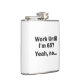 The flask itself is fine. It’s a cheap flask, obviously bought in bulk, however am prepared to overlook that. Given that it is a personalized item, I would have liked to have seen gift boxing instead of the generic packaging. Terrible printing, and/or quality. It’s a cheap, tacky vinyl. It is not cut straight and is also applied in a way that it is overhanging the bottom, causing the glue to catch on items and it will eventually roll and tear, damaging the wrap.