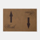 This doormat features two arrows pointing in opposite directions. One arrow points you away from your house to work; the other point to inside for wine.
