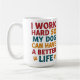 This design is for every dedicated dog owner out there. Featuring the relatable phrase "I work hard so my dog can have a better life" in a mix of vibrant colors, this shirt is a funny and heartfelt way to show your devotion to your furry best friend. The addition of subtle paw prints makes it the perfect design for anyone who loves their canine companion more than anything.