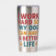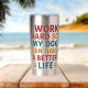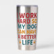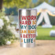 This design is for every dedicated dog owner out there. Featuring the relatable phrase "I work hard so my dog can have a better life" in a mix of vibrant colors, this shirt is a funny and heartfelt way to show your devotion to your furry best friend. The addition of subtle paw prints makes it the perfect design for anyone who loves their canine companion more than anything.