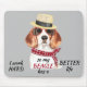 Here's the perfect mouse pad for the Beagle owner! At the middle is a portrait of a beagle wearing a hat and red sunglasses. At the bottom is red and black text that says "I work HARD so my BEAGLE has a BETTER life". Cute!
