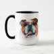 Here's the perfect office mug for the Bulldog owner! At the middle is a portrait of a beautiful English Bulldog wearing red sunglasses. The image is printed on two sides, and in the middle is red and black text that says "I work HARD so my BULLDOG has a BETTER life". Cute! *If you prefer to change or remove the text, you may do so.