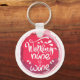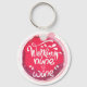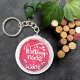Round button keychain features fun text "Working Nine to Wine" on a red wine stain. Keychains make memorable gifts for family and friends or create for yourself.