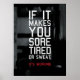 The poster features a powerful and succinct quote in a bold, attention-grabbing font: "if it makes you sore tired or sweat, it's working." These words serve as a daily reminder that true progress often comes wrapped in discomfort and challenge, compelling you to push past your limits. It's perfect for those who thrive on encouraging sayings to fuel their fitness journey or need that extra bit of motivation to get moving.