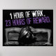The poster captures the essence of dedication and perseverance with its bold, impactful quote: "1 hour of work, 23 hours of reward." This phrase serves as a constant reminder of the incredible results reaped through hard work and commitment. Whether you're a gym rat, fitness buff, or success-driven entrepreneur, these words of wisdom help spark the motivation needed to achieve any dream.