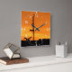 A workover rig, tripping pipe in the oilfields, with a vivid sunset background.