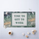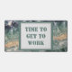 This desk mat features a photo that captures the beautiful colours in a polished piece of fluorite. This gemstone displays colours of purple, green, and yellow in a striped pattern displaying the unique cubic crystals of this gem. "Time To Get To Work" appears inside a rectangular frame in the centre of this desk mat.