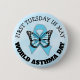 World Asthma Day, health holiday button with awareness ribbon and butterfly.